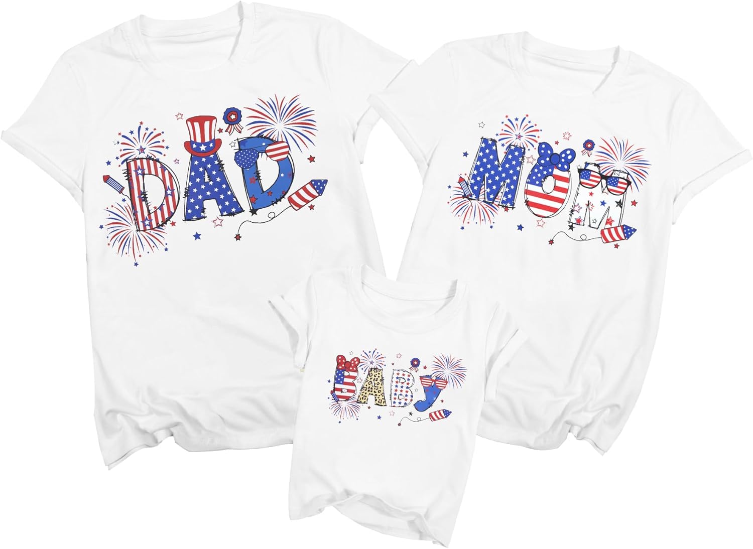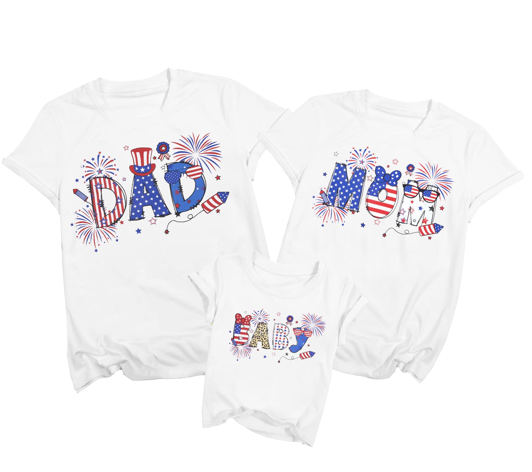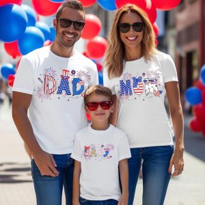 - Patriotic Family Matching Outfits: Featuring vibrant “MOM””DAD” and”BABY” prints with patriotic elements like fireworks, stars, and the American flag, playful designs that suit everyone from toddlers to grandparents, these shirts are perfect for a fun-filled family trip.4th of july shirts, family matching patriotic tshirt, american flag tee tops for family, fourth of july mommy and me matching outfits, dad and me family vacation set .