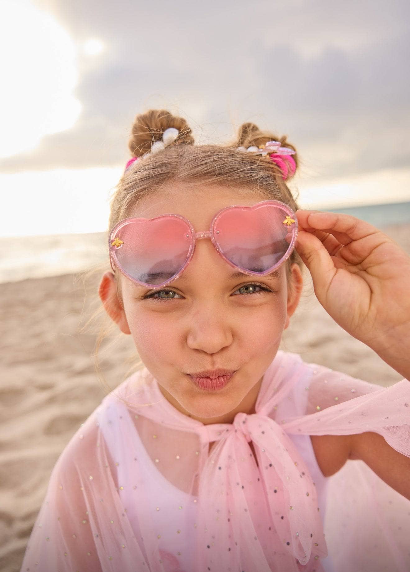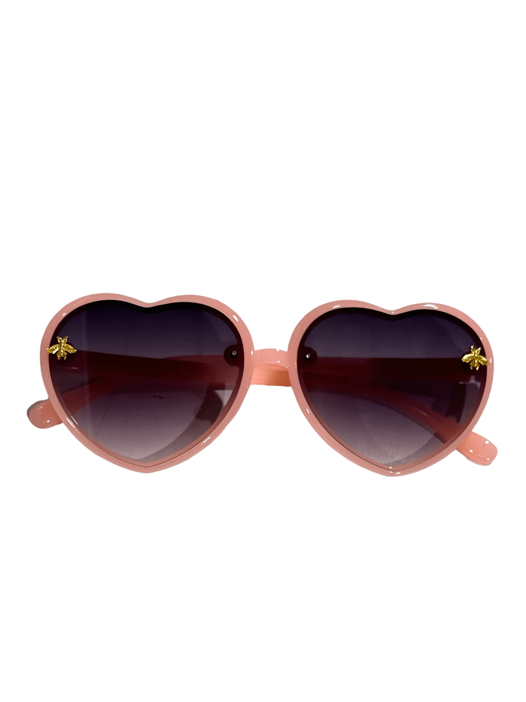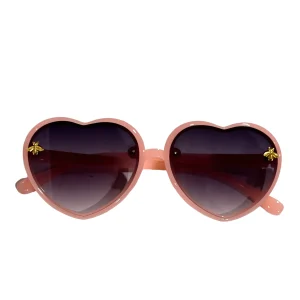 - Sweeten any look with these heart-shaped sunglasses featuring a delicate gold bee detail.