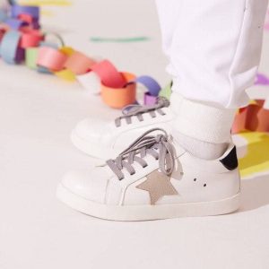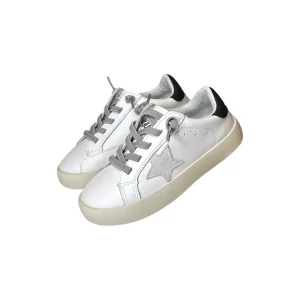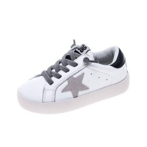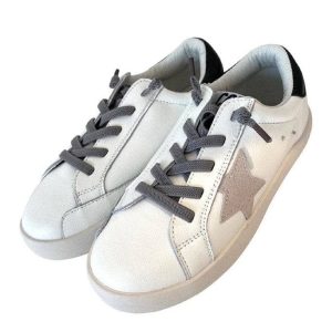 - Elevate casual looks with this sneakers, featuring a classic white base with a bold black heel tab and gray star accent.