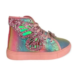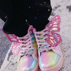 - Sparkling Butterfly Sneakers featuring vibrant rainbow sequins and glittery butterfly wings for a magical look.