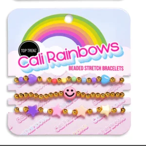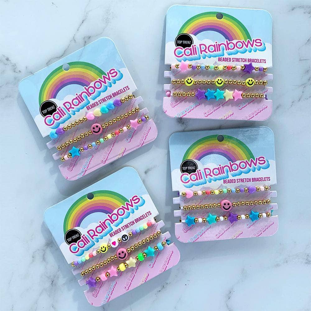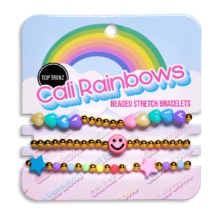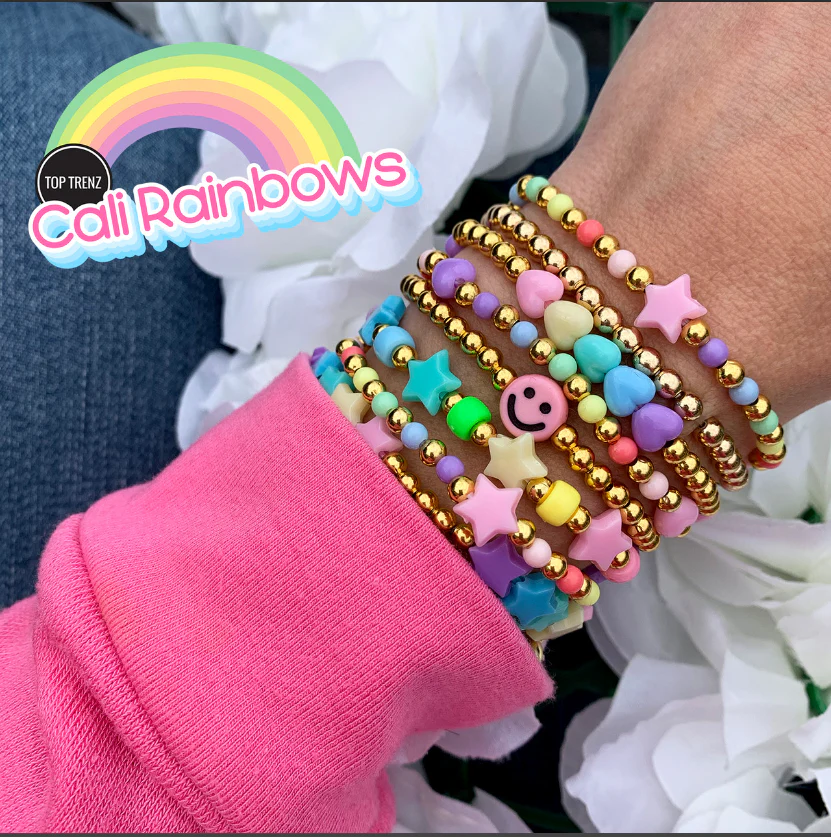 - Vibrant stretch bracelet set featuring a mix of colorful beads, metallic accents, and playful charms.