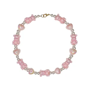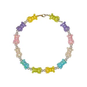 - Sweet and playful necklaces featuring adorable candy bear charms, paired with a mix of colorful beads and classic pearls for a fun and whimsical look.