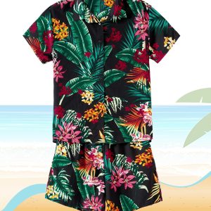 - Design: Elevate your summer style with our Button Down Hawaiian Beach Shirt and Short Sets adorned with an enchanting print of tropical plants and flowers. Perfect for family couples on a cruise vacation or beach retreat, these family photoshoot matching outfits exude a relaxed and stylish vibe. Effortlessly pair them with a straw hat, silk scarf, or sunglasses to showcase your casual yet fashionable look.