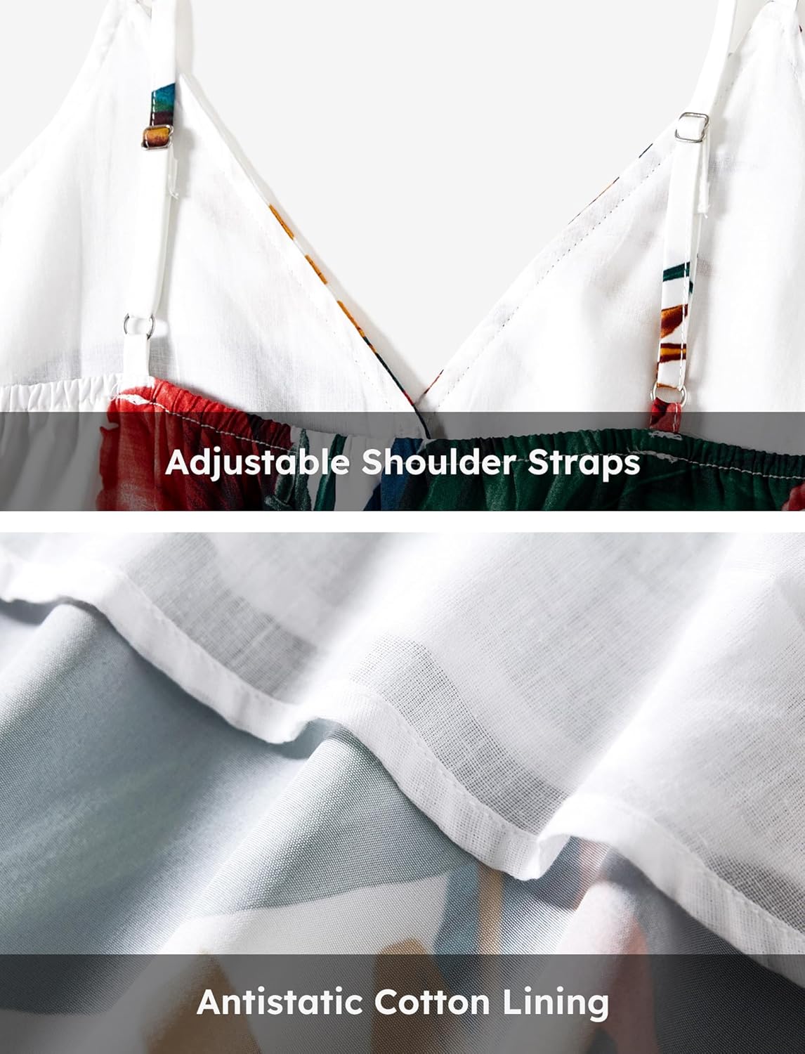 Family Matching Outfits Mommy and Me Dresses Hawaiian Tropical Vacation Beach Spaghetti Strap Dress and Shirt