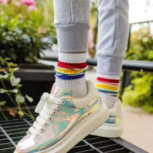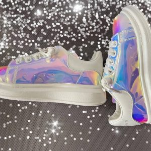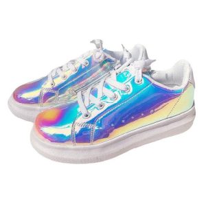 - Eye-catching sneakers featuring a mesmerizing holographic finish that changes color in different lights.