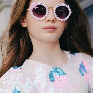 Hand-beaded round pearl sunglasses