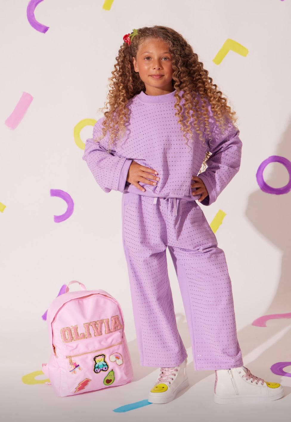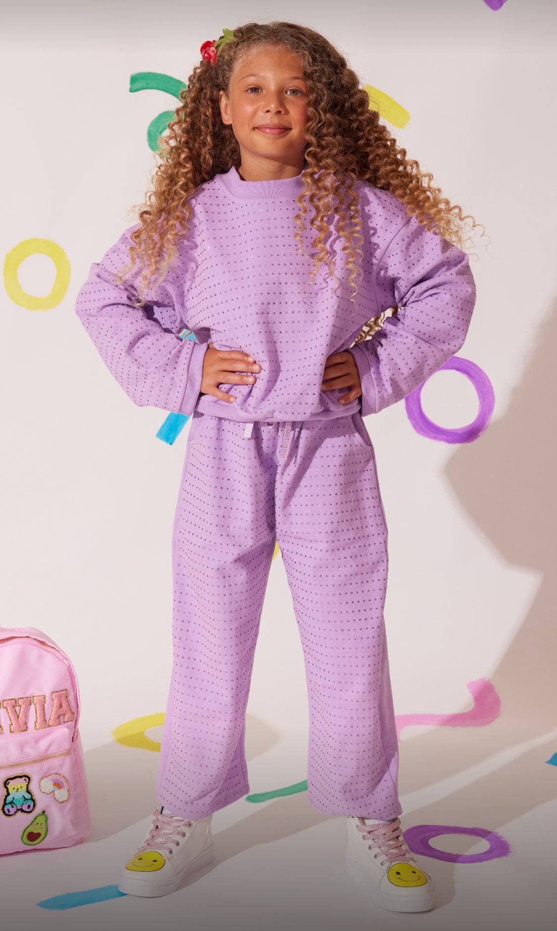 - Sparkling lavender crystal embellishments bring a touch of glam to this set.
