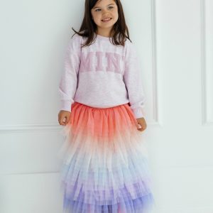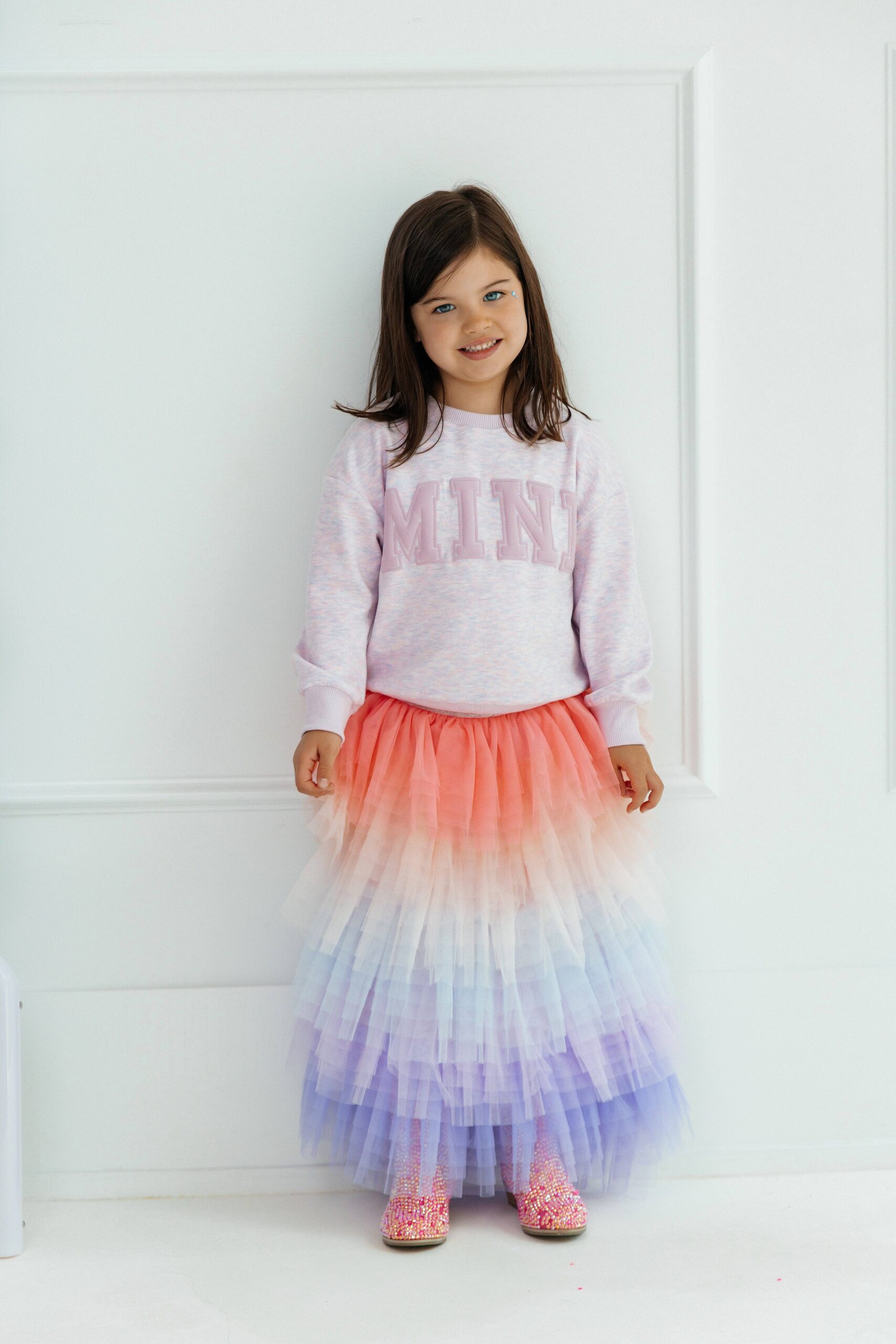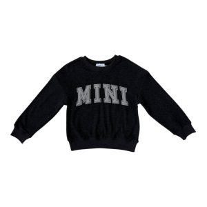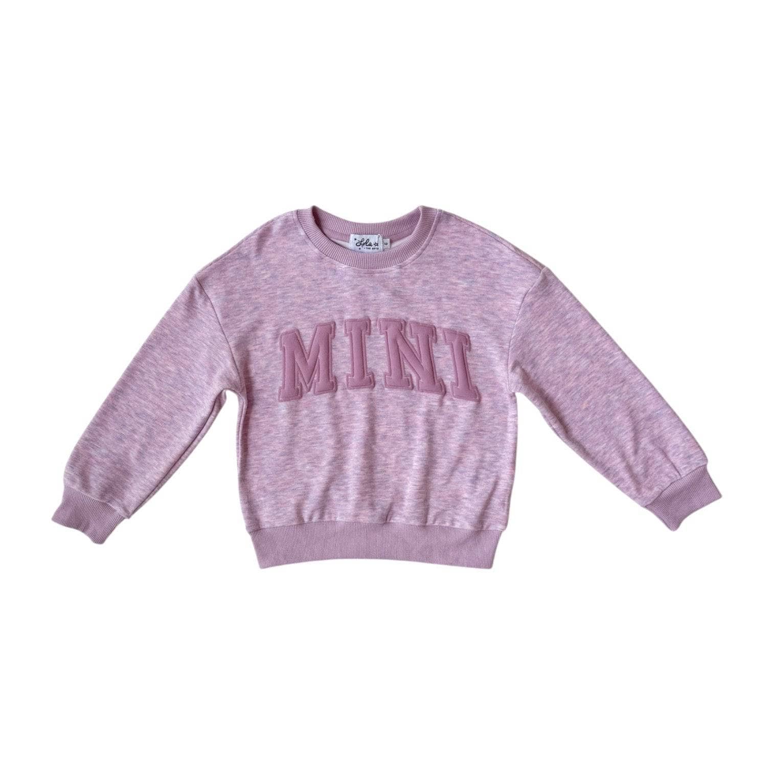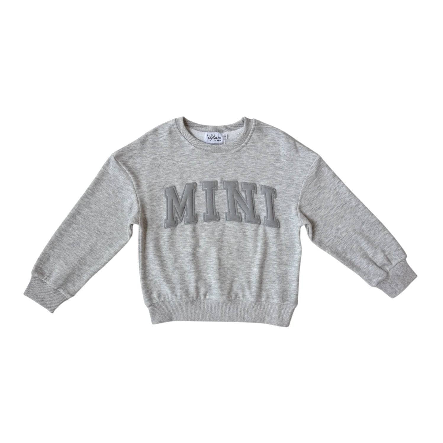 - Classic crewneck sweatshirt featuring a bold ‘Mini’ graphic in soft pastel and neutral tones.