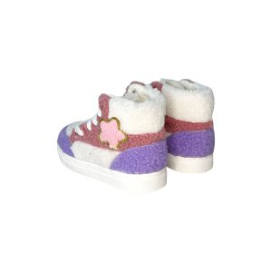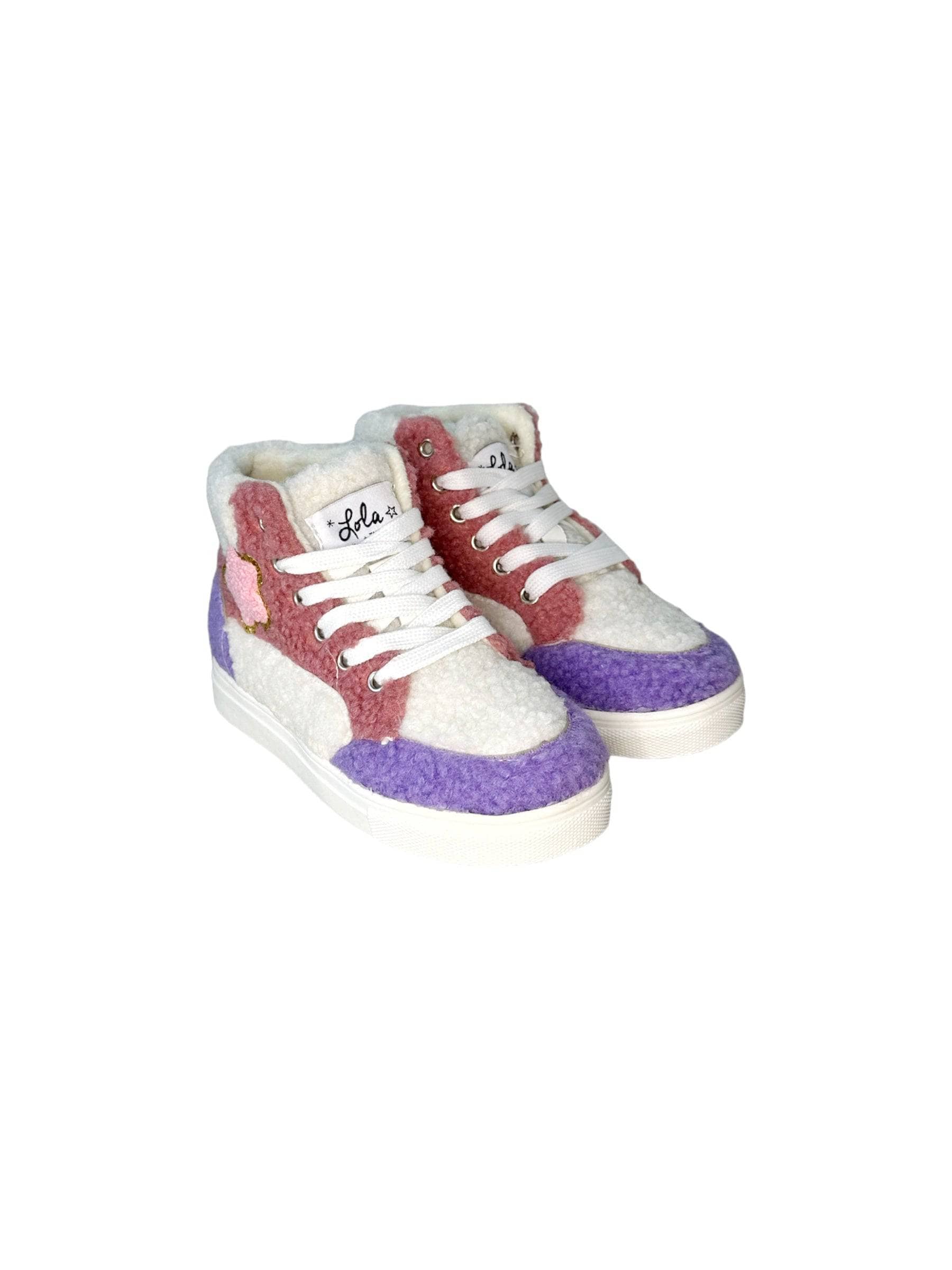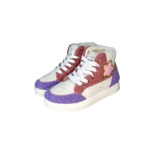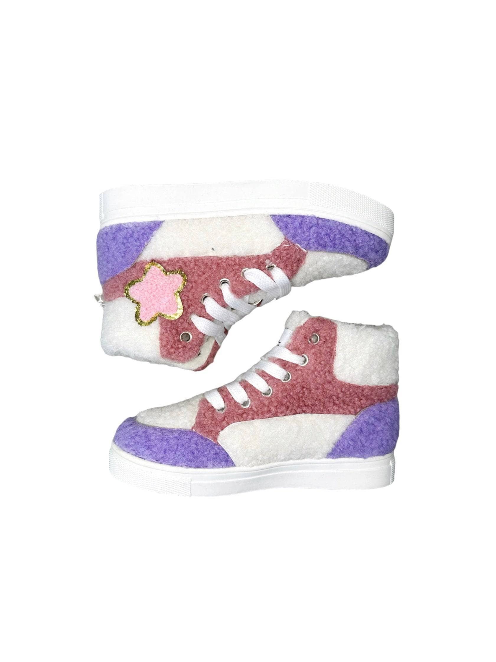 - Embrace whimsical charm with the Pastel Cloud Sherpa High-Top Sneakers, featuring soft pastel hues and a playful star embellishment.
