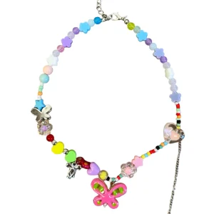 - Multicolored beads with charming butterfly and heart accents, creating a playful and unique design.
