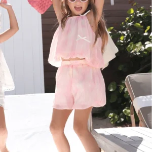 - Adorned with delicate bow accents and pearl-like straps, adding a charming and elegant detail.