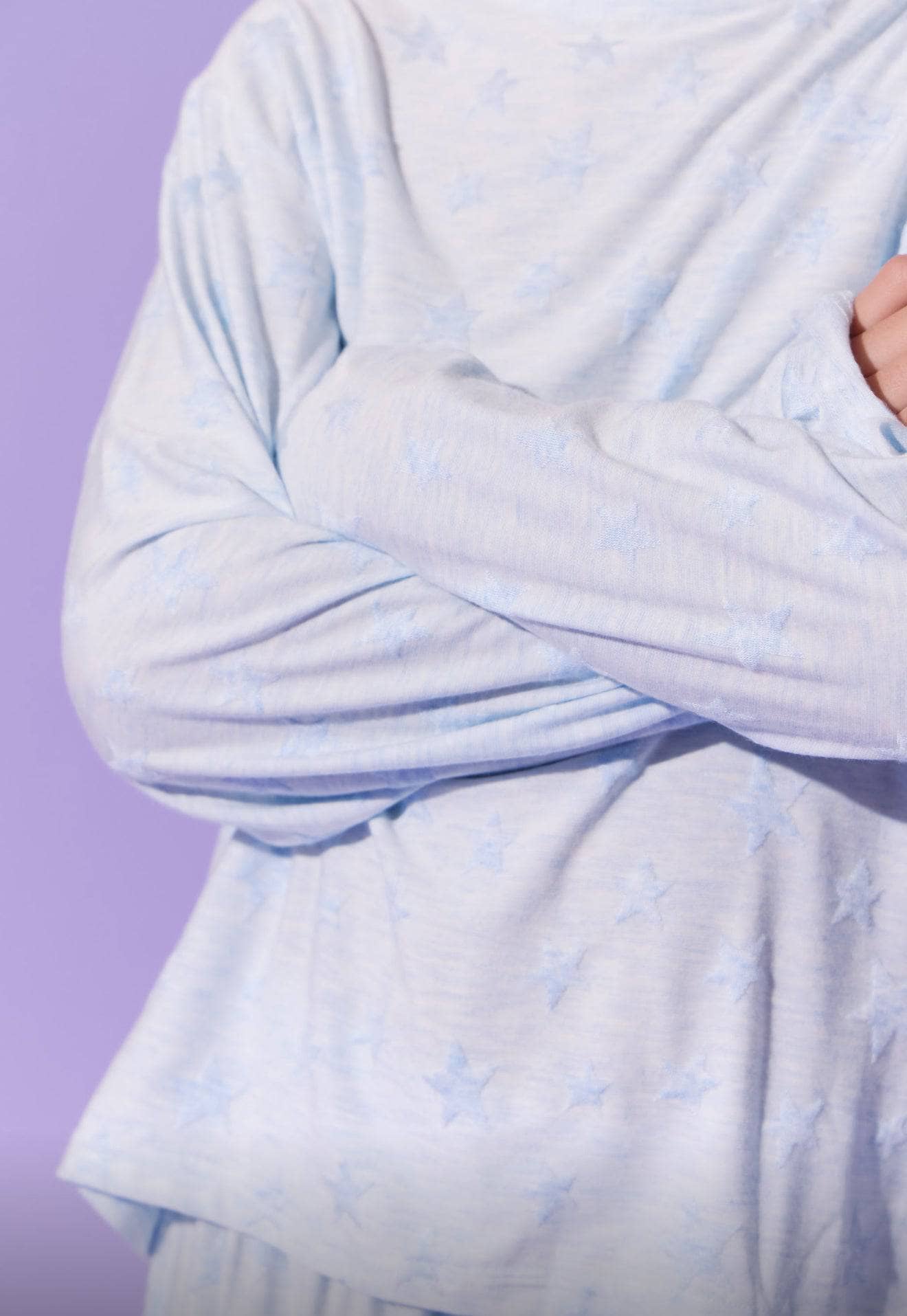 - Ultra-soft two-piece set designed for effortless comfort, featuring a subtle star print that adds a stylish touch.