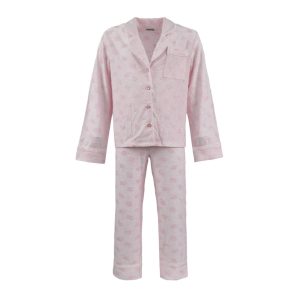 - Button-down top with a chest pocket and matching straight-leg pants for a classic silhouette.